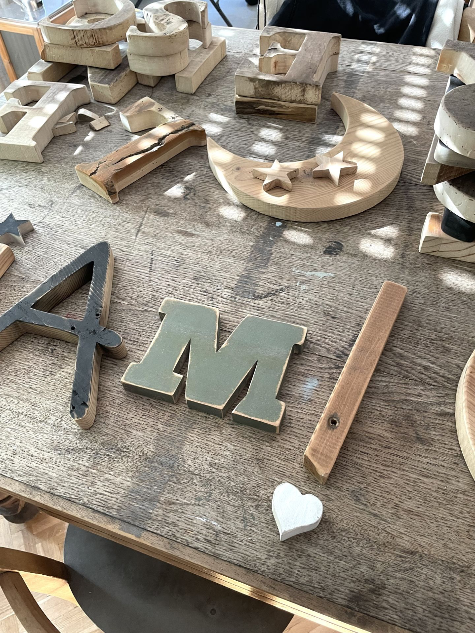 tu trouveras ici des belles matières, des créations uniques en bois massif de second usage,